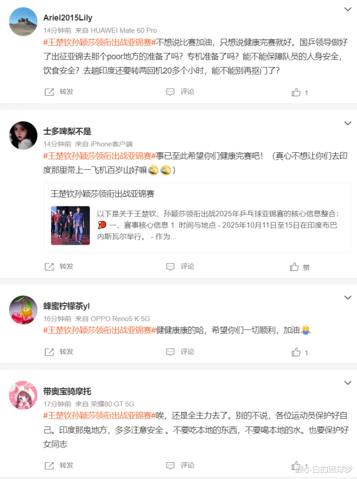 孙颖莎、王楚钦作为本次亚锦赛的核心人物,如果在亚锦赛之前就吃坏肚子那必然会朝着不利的方向运转,所以很多球迷都呼吁到了印度不要乱吃东西。