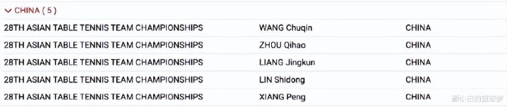 北京时间9月21日,从亚锦赛官网来看,中国队的名单已经出炉,男团:王楚钦、林诗栋、梁靖崑、向鹏、周启豪;