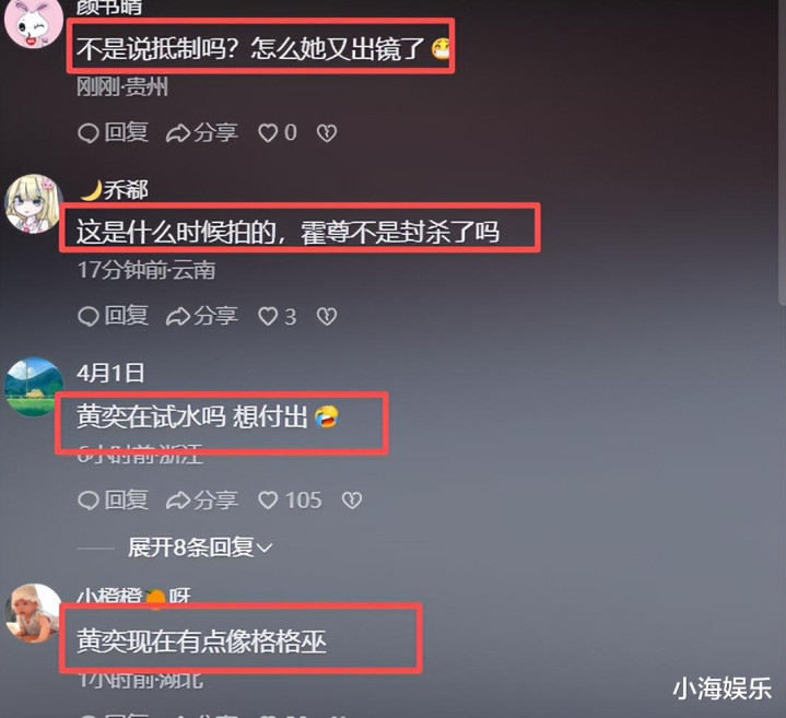 不出所料,该视频的评论区很快“沦陷”。有吐槽黄奕像格格巫,另一半则是调侃霍尊。