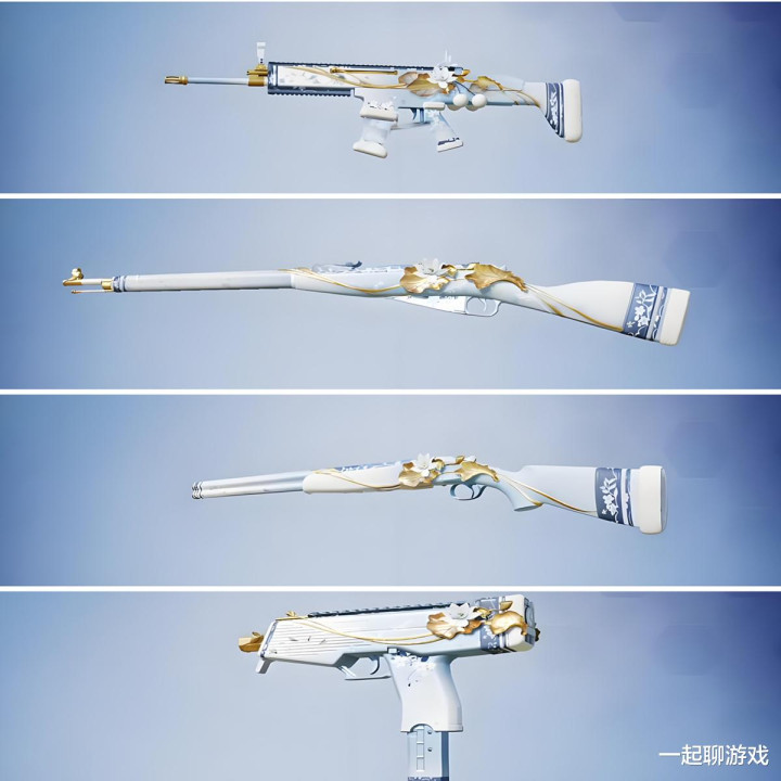 接下来再来看枪皮,此次出场的分别是ScarL、莫辛纳甘、S686、TMP-9,从版型设定上来看的话,属于比较简单的“贴图”类型,只是加上了一些细节的装饰,看起来还算是马马虎虎吧,毕竟都是紫色等级,也不能要求太过分。