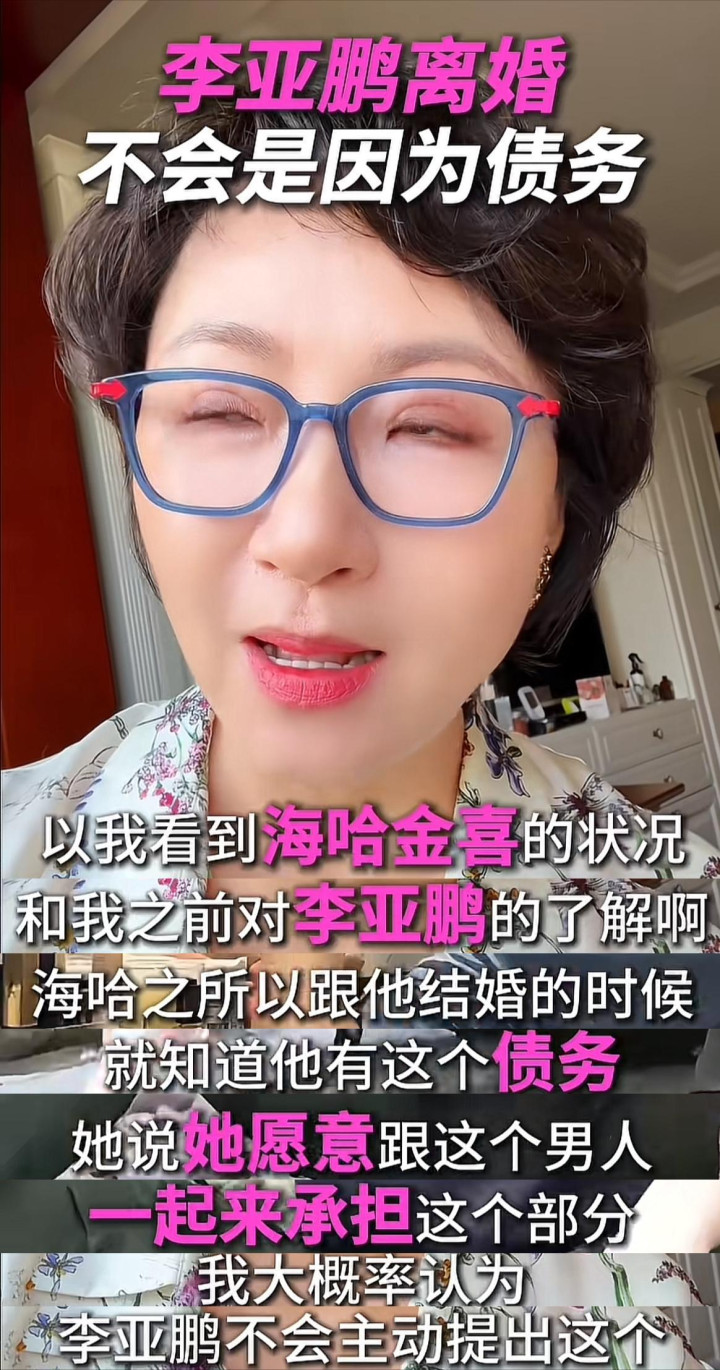 然而,离婚背后真的只是金钱问题吗?如果债务真是主因,那李亚鹏为何要选择与海哈金喜走到这一步?似乎还有更深层的原因在其中。